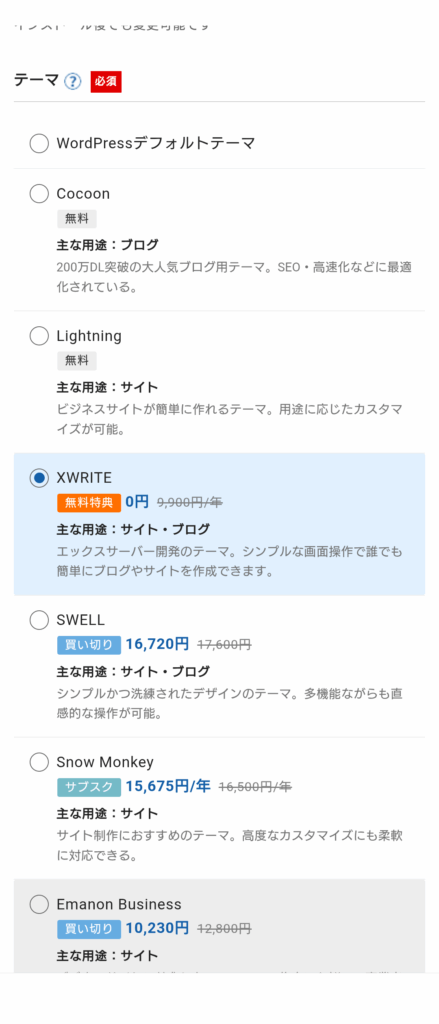 今回は、無料特典のXWRITEを選択します。