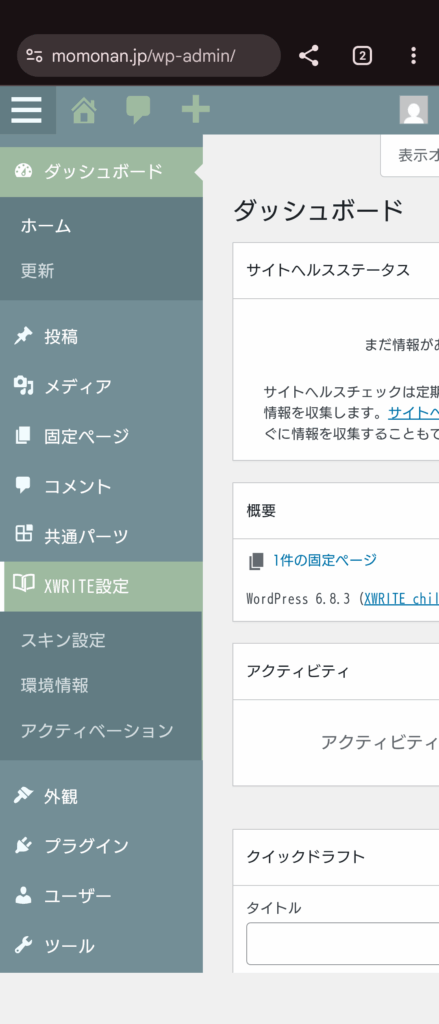 Word Press個人ページの、WRITE設定から、アクティベーションを選択します。