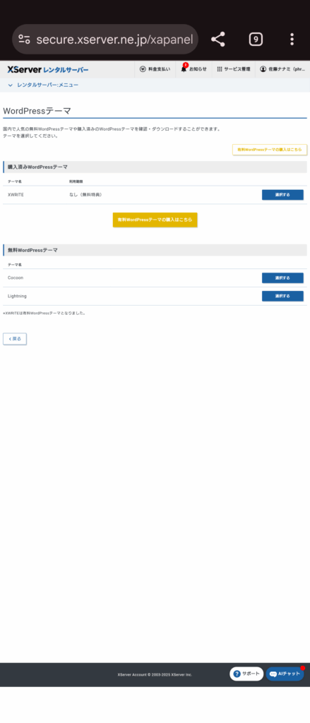 購入済みテーマから、XWRITEを選択します。