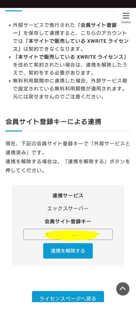 XWRITEの会員サイト登録キーを貼り付けて、連携します。